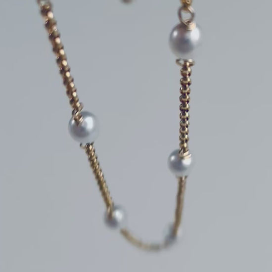 Above is are 4-5mm white baroque pearls set on either sterling silver or 14k Gold Filled hardware. The anklet length is approximately 23cm plus a 3cm extension. These are bespoke and made to order.