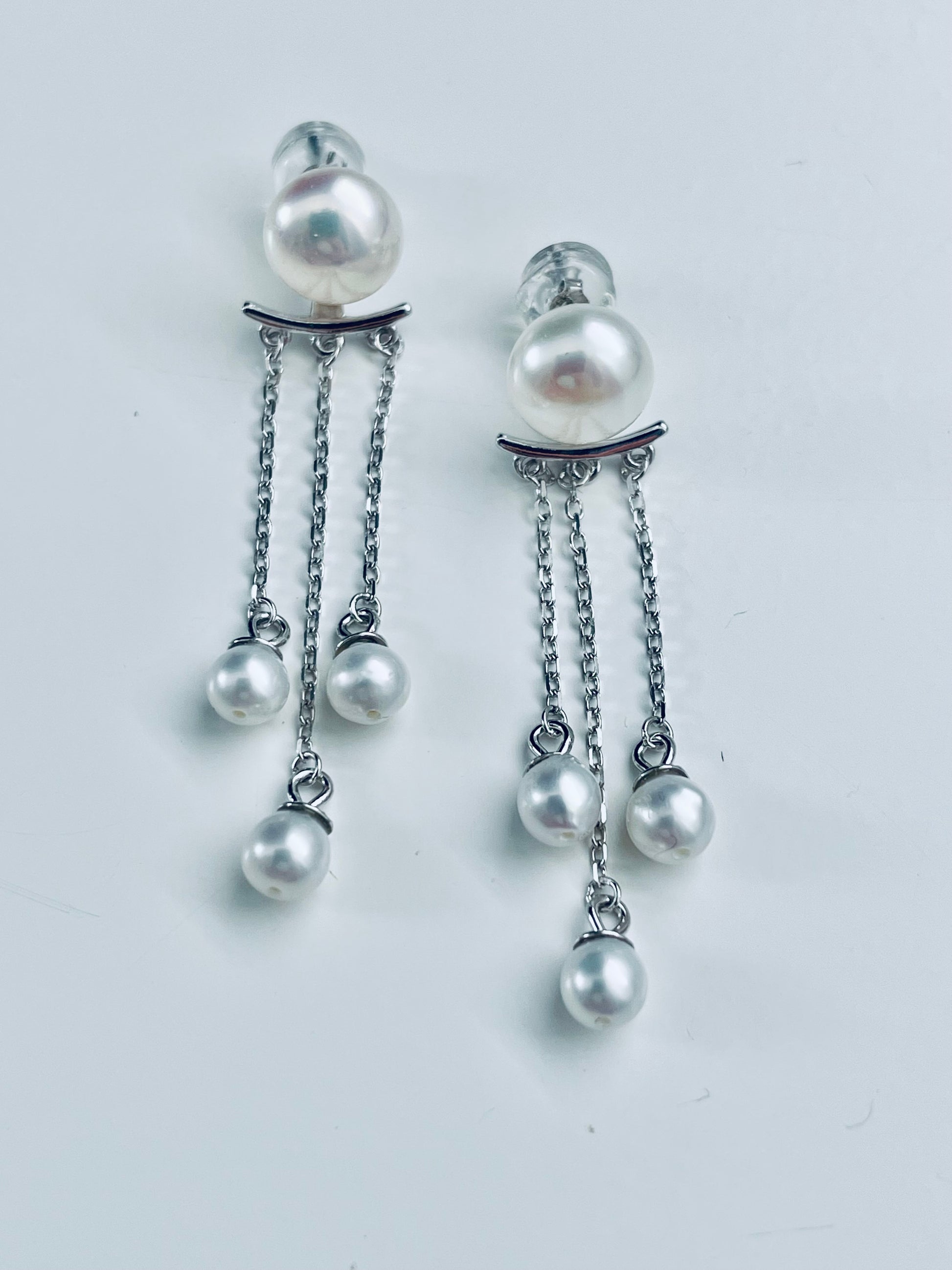 Above are 7mm and 3mm white freshwater pearls set on sterling silver or gold vermeil studs. These earrings are two for one - you can detach the back and add the drop to another pair, or wear the studs by themselves!