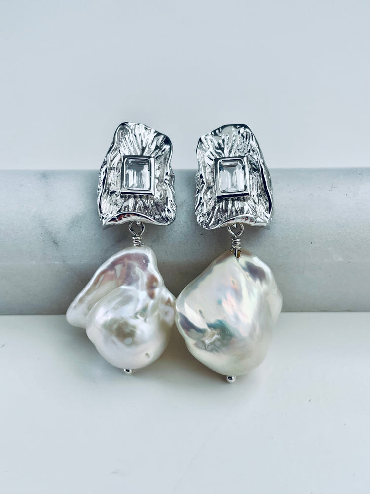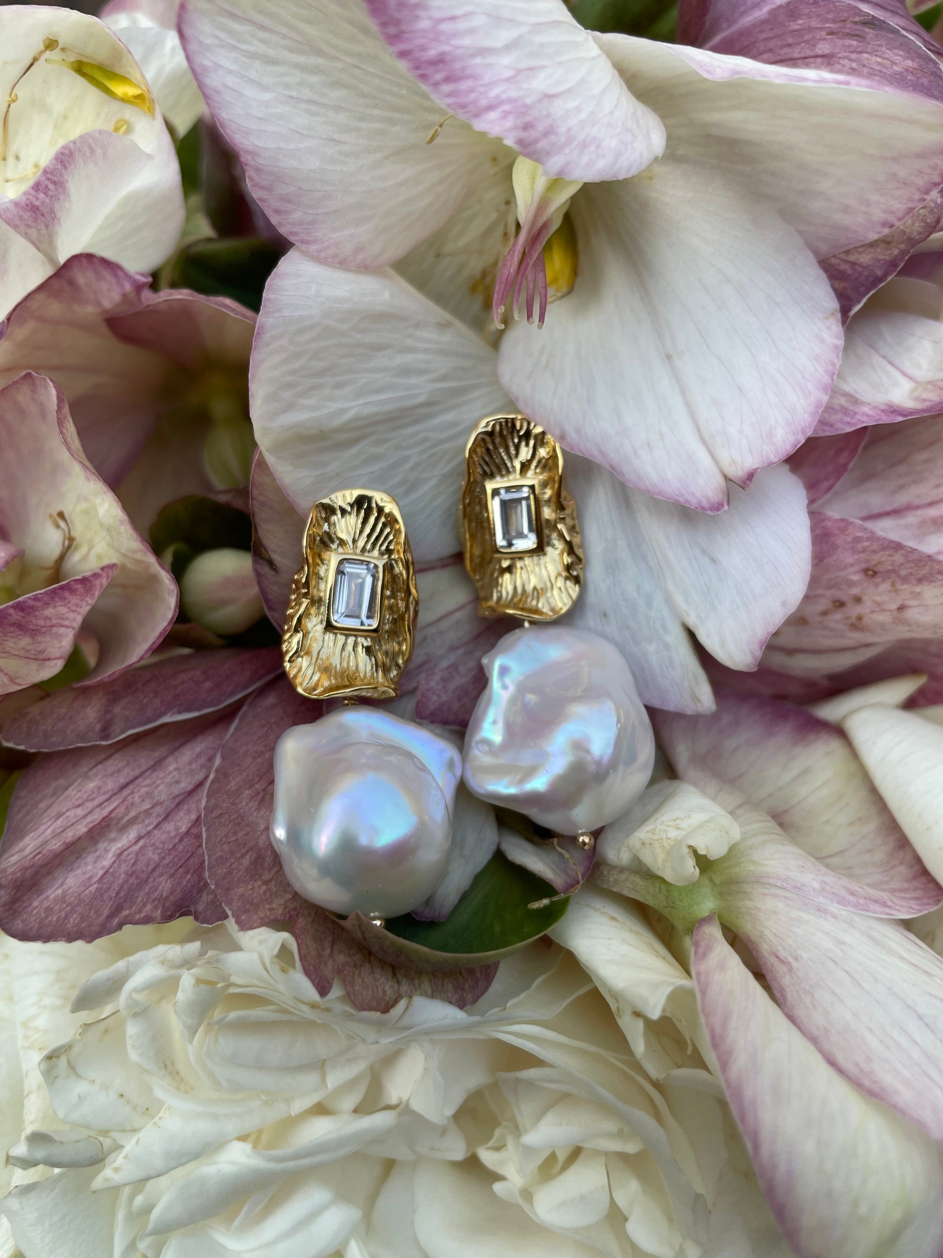 Above white 15-18mm giant baroque freshwater pearls set on gold vermeil posts.