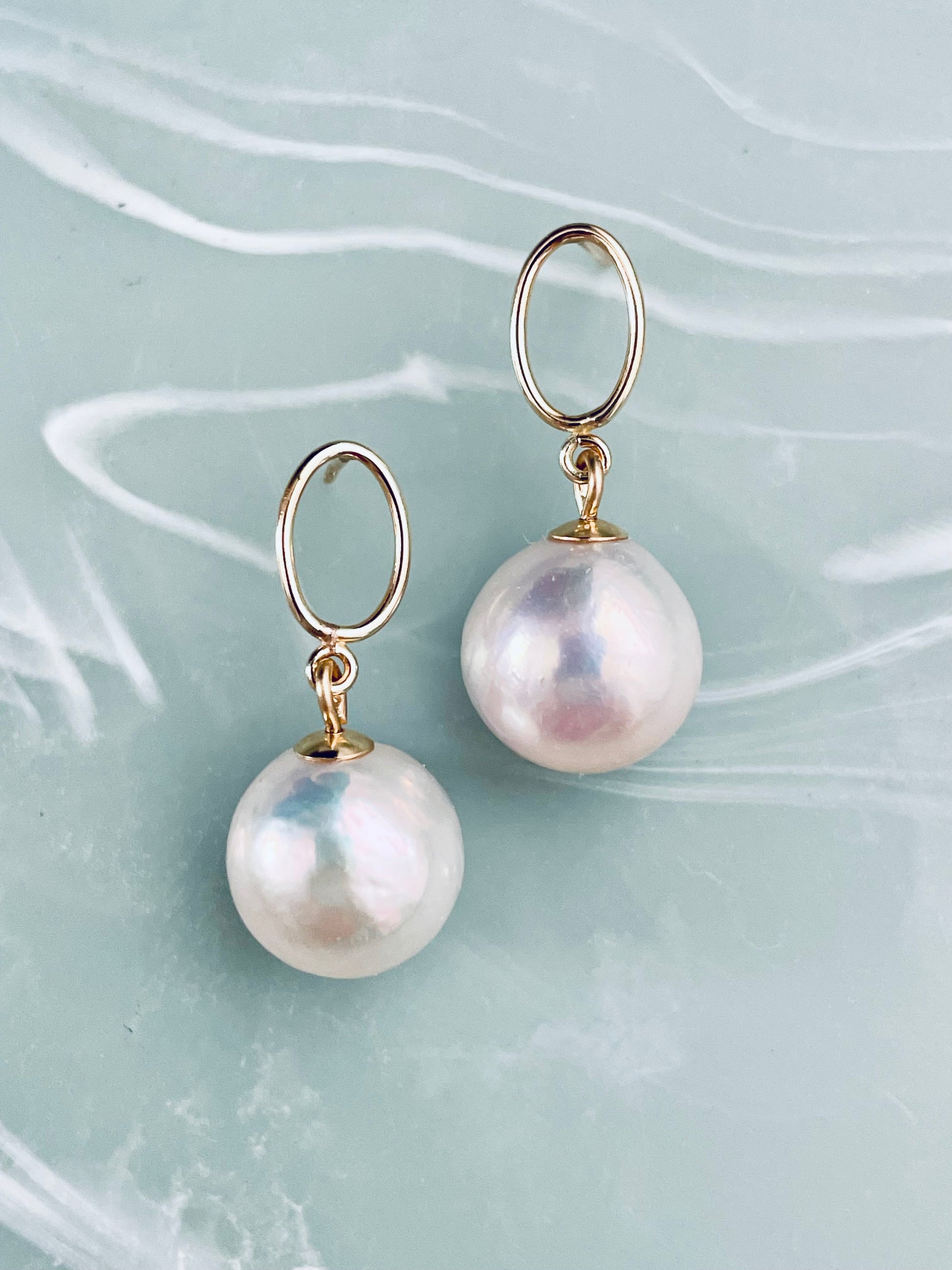 Above are 12-13mm white Edison freshwater pearls set on either 14kt gold vermeil or sterling silver studs.