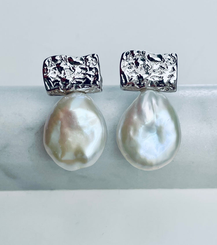 Above are 12-13 white tear drop coin freshwater pearls set on either 14kt gold vermeil or sterling silver studs.